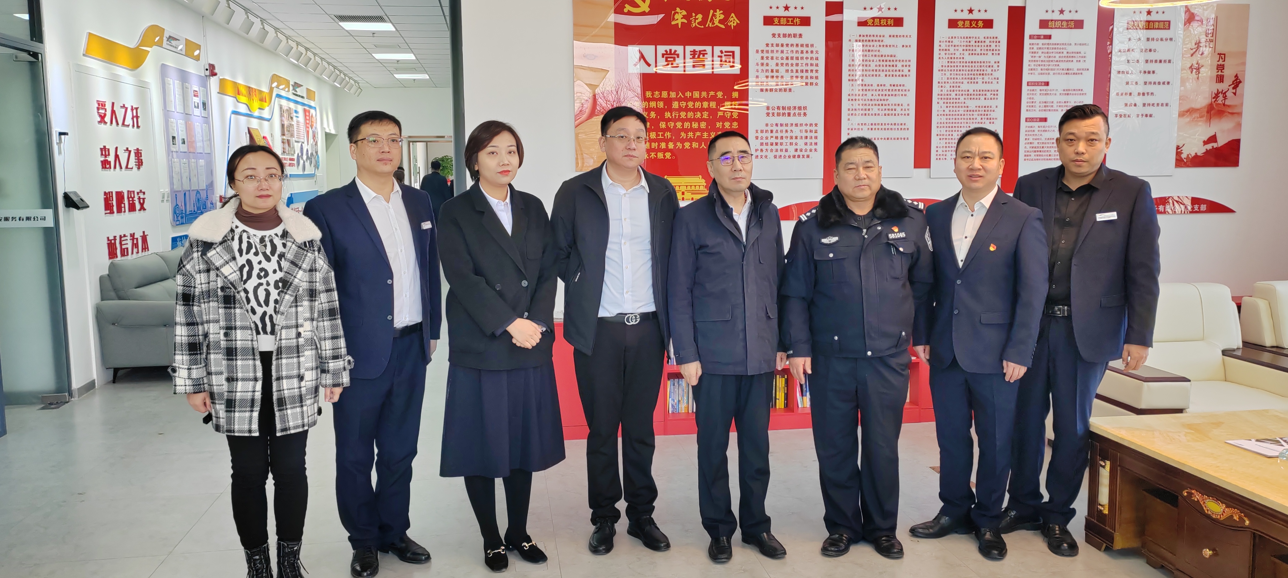 2023年2月21日,天津市保安协会李蔚会长、张蕾副秘书长、刘丙强部长及公安监管负责同志、第三方评审机构到访鲲鹏保安公司,进行自律巡查暨信用评审现场尽调工作。李蔚会长对鲲鹏保安公司的标准化建设给予高度评价,明确了本次等级评定工作重要意义,及对行业未来的深远影响。评审工作遵循公平、公正、公开原则,实事求是,有力促进保安行业的健康发展。结合鲲鹏实际,提出指导性建议,并对“鲲鹏”的未来发展寄予厚望。鲲鹏...